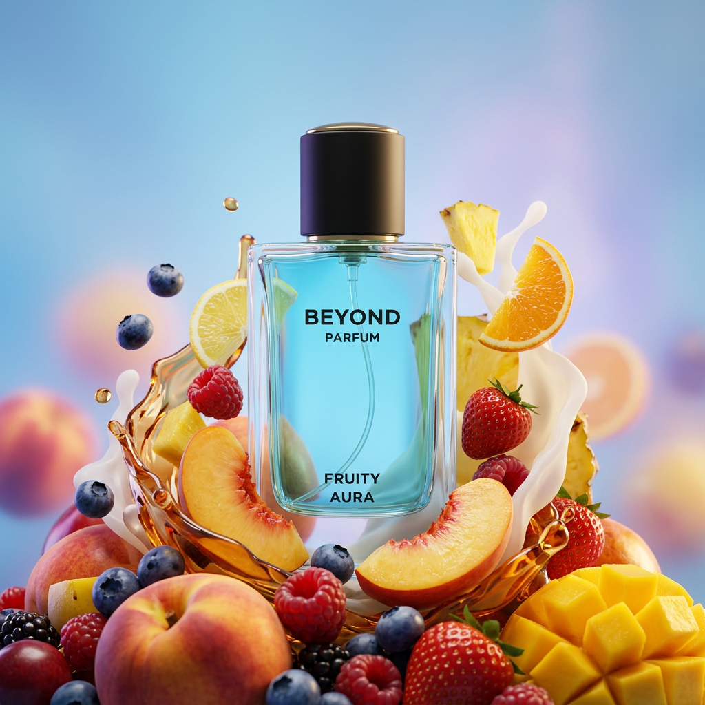 عطر Fruity Aura يجسد طاقة الفواكه المشرقة في تركيبة فرنسية عالية النقاء من Beyond Parfum.